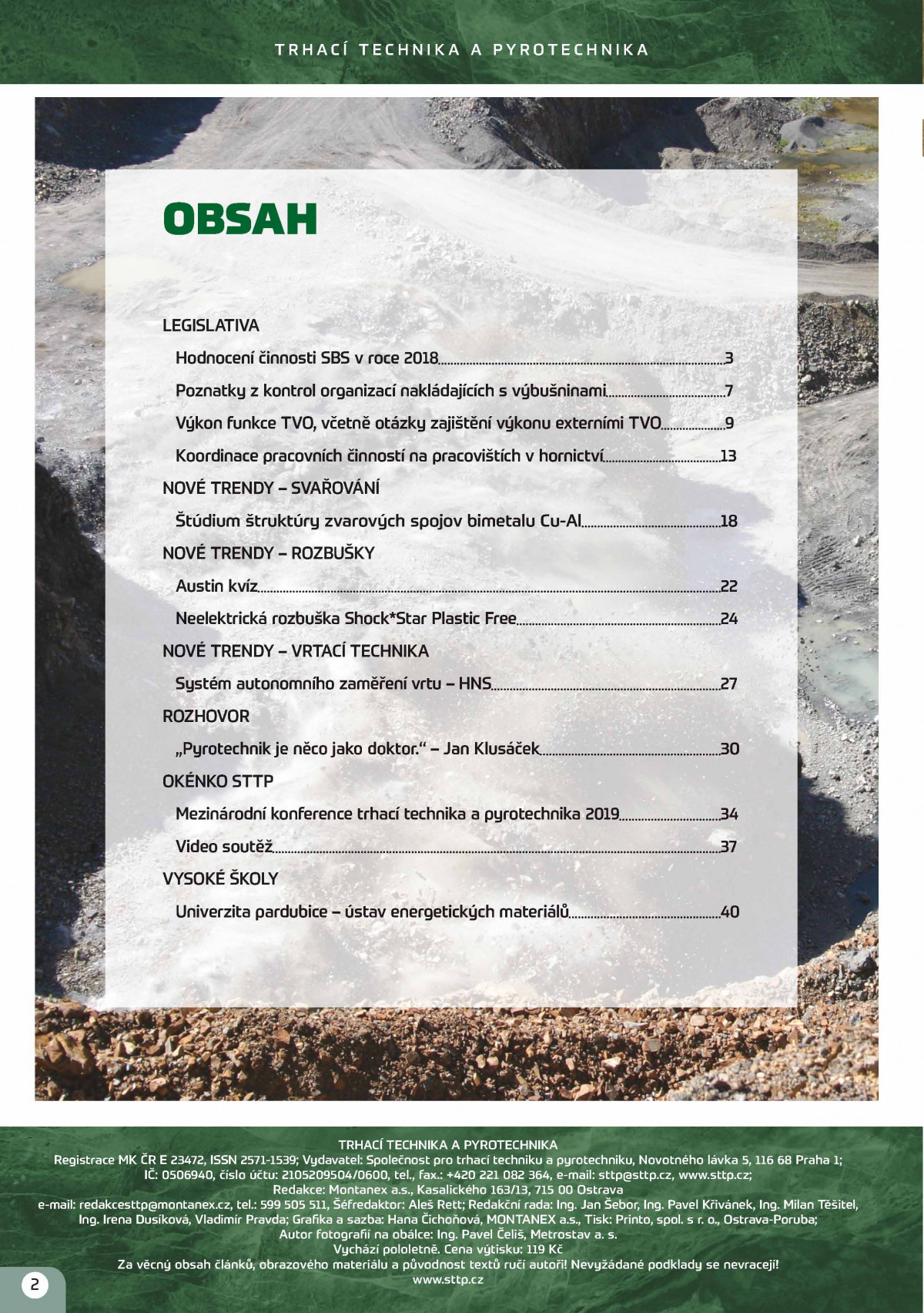 Druhé číslo roku 2019 odborného časopisu zabývajícího se tématy trhacích prací, výbušnin, pyrotechniky a souvisejícími oblastmi.