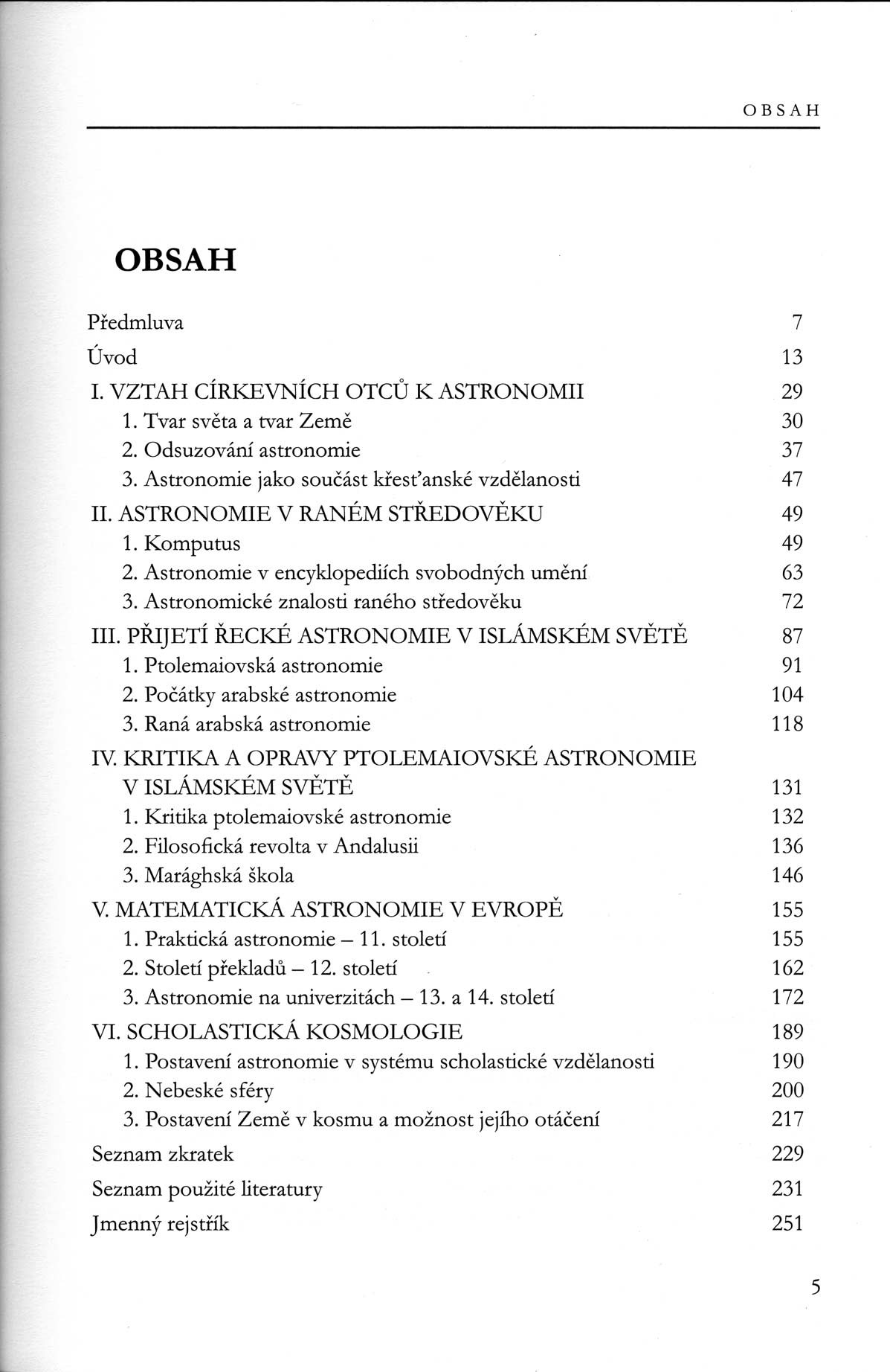 Dějiny středověké astronomie od Daniela Špeldy jsou druhým dílem plánované trilogie o dějinách astronomických teorií od antiky po renezanci. Ve středověku se na rozdíl od antiky v mnoha ohledech výrazně proměnily role, cíle, účely i vlastní sebereflexe astronomických výzkumů, což na základě chronologického přehledu podává tato kniha. Čtenář se tak dozví detaily o patristické a raně středověké astronomii, astronomii v muslimském světa, raně, vrcholně i pozdně scholastické astronomii, včetně fundovaných základů kosmologické problematiky.