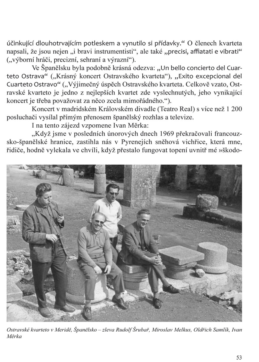 Historie dvou komorních souborů, které zásadním způsobem ovlivnily ostravský hudební život v 2. polovině 20. stol. a jejichž úroveň a věhlas potvrdila prakticky celá Evropa, je zde podána formou vzpomínek kombinovaných s precizními seznamy skladeb, autorů, interpretů i koncertních míst. Grafická úprava umožňuje jednoduchou čtenářskou orientaci v pasážích vypravěčských i katalogových. Zvláště u těch prvních se čtenář často pobaví Měrkovým suchým humorem – Ivan Měrka není bavič a leckdy třaskavé „historky“ podává lapidárním stylem s naprosto vážnou tváří.