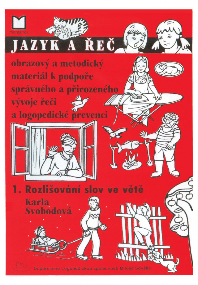 50 karet formátu A4, černobílý tisk, karton, lak, magnet – určeno pro ZŠ a ZvŠ. (Text ve zvětšeném formátu. Určeno k rozstříhání a následné manipulaci s textem na magnetické tabuli. Umožňuje skládat z jednotlivých slov věty k jednotlivým obrázkům.)